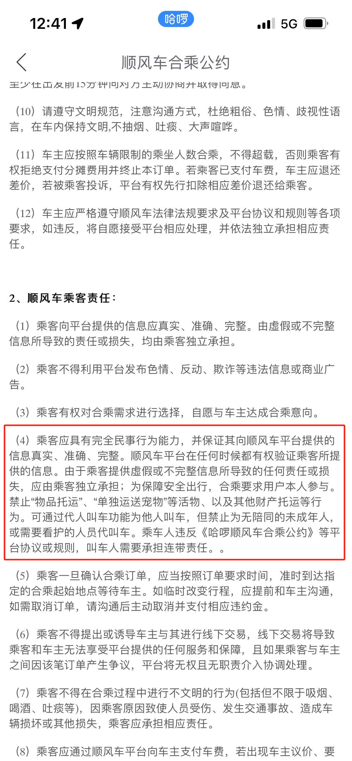 哈啰顺风车合乘公约中相关规定